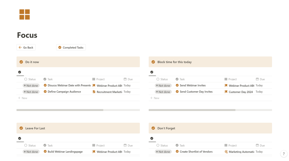 - Ensure each aspect of your strategy gets the attention it deserves.