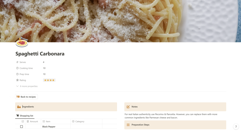 One of the standout features of this template is the built-in shopping list. You can select ingredients from your chosen recipes, and they'll automatically populate your shopping list. This list is optimized for mobile use, so you can access it easily on your phone while shopping. Say goodbye to forgotten items and hello to a more organized and efficient shopping experience.